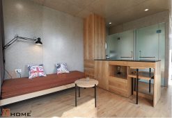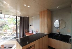 Nhà lắp ghép DSDhome Thái Bình là căn nhà được thiết kế nằm bên bờ hồ có không gian thoáng mát, đầy đủ các tiện nghi. Công trình nhà lắp ghép được thi công nhanh chóng phù hợp với yêu cầu của gia chủ. Bởi các module đều được sản xuất tại xưởng và chỉ cần vận chuyển đến nơi thi công bằng xe container để tiến hành lắp ráp đảm bảo tiết kiệm thời gian, chi phí mà không gây ô nhiễm môi trường.