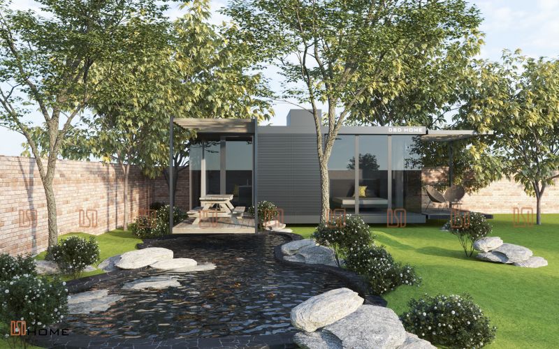 Nhà khung thép kết hợp với sân vườn thoáng mát