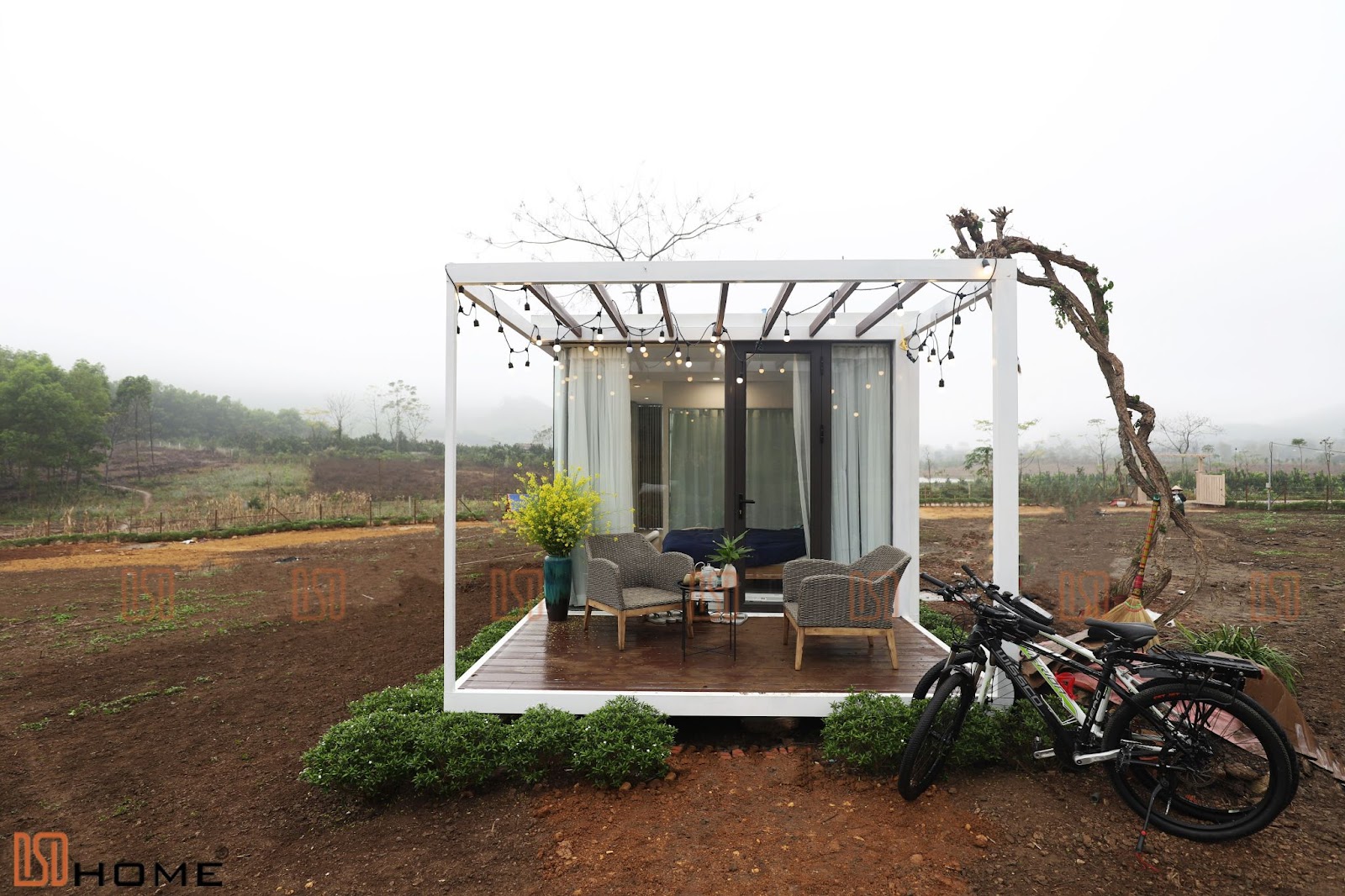 Phần ngoại thất nếu được đầu tư thì nhà khung thép hoàn toàn có thể sánh ngang với bất kỳ ngôi nhà thông thường nào. Tạo không gian thư giãn ngoài trời có thể là bộ bàn ghế nhỏ, lò nướng và mái che độc đáo.