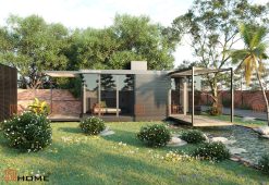 Đây là một module nhà lắp ghép tiêu biểu bên cạnh hồ cá được DSDhome tư vấn thiết kế. Với những bụi hoa trên thảm cỏ xanh mướt, cùng với hồ cá lăn tăn, không gian ở đây giúp cho du khách cảm thấy sự thư giãn và yên bình.