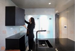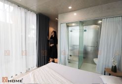 Với cửa làm bằng thủy tinh trong suốt, cùng với rèm mang đến sự thoáng mát nhưng vẫn đảm bảo được sự riêng tư.