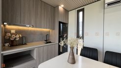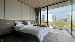 Phòng ngủ master thứ hai này có khu vệ sinh và tủ quần áo nằm ngay lối vào, giữ nguyên sự tiện nghi và gọn gàng, tương tự như phòng ngủ trước với giường 1m6 x 2m và view bao trọn cảnh quan ngoài trời.