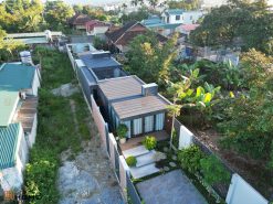 Ngôi nhà được xây dựng trên mảnh đất hẹp ngang. Tuy nhiên, ngôi nhà vẫn sở hữu không gian thoáng rộng và lưu thông gió nhờ giải pháp nhà lắp ghép của DSDhome, đó là sử dụng giếng trời ở giữa, 2 bên 2 khối phòng khách & phòng ngủ riêng biệt, giúp tối ưu công năng và đảm bảo thẩm mỹ. Là căn nhà cho bố mẹ nghỉ ngơi, cũng như không gian cho các cháu về chơi mỗi dịp hè, ngôi nhà được thiết kế hiện đại với full nội thất cao cấp, sàn SPC, trần lam gỗ nhựa và có khả năng chống nóng, chống cháy, cách âm, cách nhiệt cực tốt. Đặc biệt, ngôi nhà được được cấp bằng bảo hộ quyền sở hữu trí tuệ về sáng tác thiết kế.