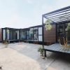 Hệ thống cửa kính của nhà lắp ghép sử dụng có độ dày là 8 – 10mm cũng góp phần cách âm tốt, tăng sự thoáng đãng cho ngôi nhà. Ngoài ra, hệ thống sàn của phần mái hiên ngoài trời, DSDhome cũng lựa chọn loại có kích thước 15,53mm, đảm bảo trọng lượng cũng như sự bền.