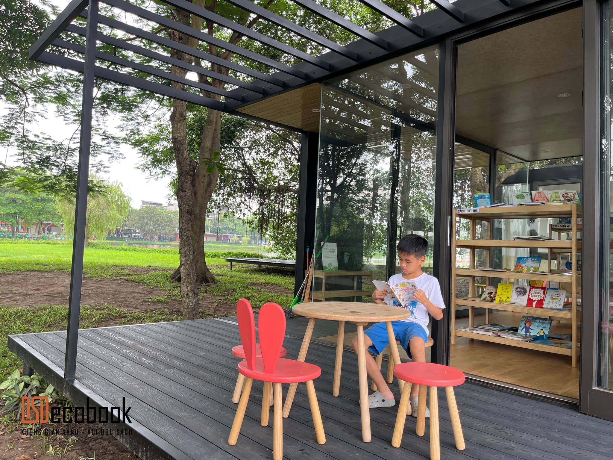 Điểm đặc biệt của DSD Ecobook so với các thư viện cộng đồng  khác là được làm từ nhà lắp ghép DSDhome với ưu điểm thi công nhanh gọn, thân thiện với môi trường kết hợp với nội thất trẻ em DSD Kids chất liệu từ gỗ tự nhiên, an toàn khi sử dụng. Thiết kế sáng tạo mang đến cảm hứng cho người đọc.