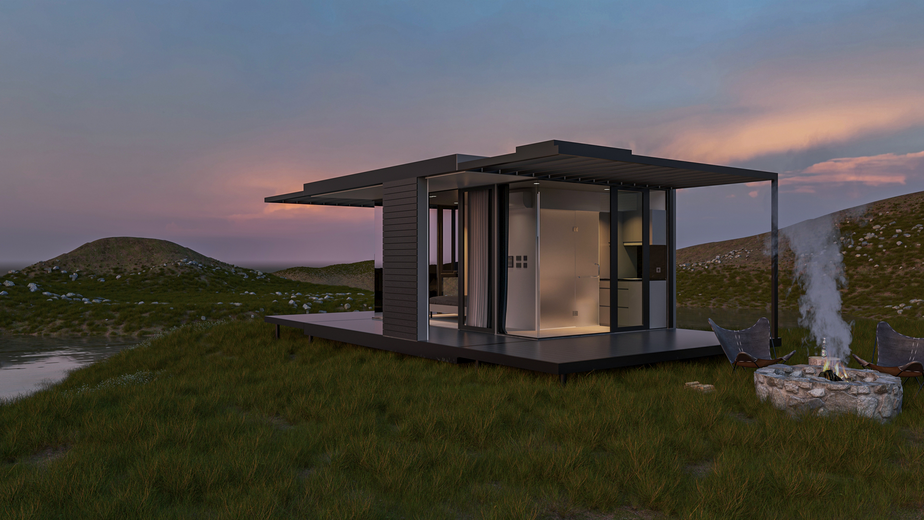Đây là mô hình nhà lắp ghép thiết kế với kiến trúc mở giúp cho các thành viên trong gia đình dễ dàng tận dụng được khung cảnh ở xung quanh. Tuy có thiết kế đơn giản nhưng ngôi nhà lại có lối kiến trúc bắt mắt, mang đến nét đẹp cuốn hút.