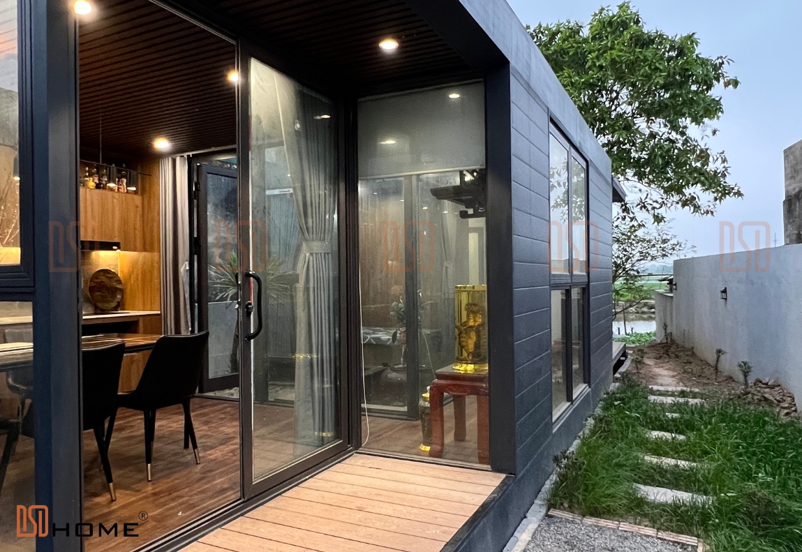 Công trình nhà lắp ghép 2 tầng Hải Phòng của DSDhome là một mẫu thiết kế hiện đại, nổi bật với sự linh hoạt và sáng tạo trong công năng sử dụng. Điểm nhấn đặc biệt của dự án này là khả năng chịu tải trọng tầng 2 lên đến hơn 5 tấn, giúp gia chủ thoải mái thiết kế các không gian độc đáo với tầng 1 là quán cà phê sân vườn đầy thư giãn, tầng 2 gồm phòng bi-a giải trí và vườn tuần hoàn xanh mát.