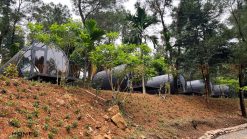 Căn nhà Hobbit giữa lòng hồ Phú Ninh là một trong những giải pháp kiến trúc độc đáo từ DSDhome, được thiết kế để đáp ứng những yêu cầu khắt khe về bảo tồn thiên nhiên. Với mong muốn tạo nên không gian nghỉ dưỡng hài hòa cùng cảnh quan xung quanh, các căn nhà Hobbit được bố trí khéo léo dưới những tán cây lớn, giữ nguyên toàn bộ hiện trạng cây cối vốn có. Đây là phương án lý tưởng cho những khu vực yêu cầu bảo tồn thiên nhiên tối đa, như khu nghỉ dưỡng ven hồ Phú Ninh.