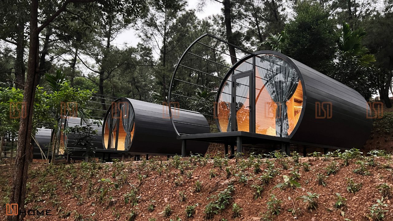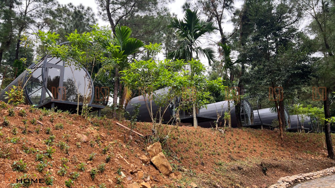 Căn nhà Hobbit của DSDhome là một giải pháp kiến trúc sáng tạo, mang đến không gian nghỉ dưỡng độc đáo giữa lòng thiên nhiên hồ Phú Ninh. Được thiết kế nhằm bảo tồn tối đa hiện trạng cây xanh và cảnh quan tự nhiên, các căn nhà sử dụng vật liệu cao cấp như tấm panel bền bỉ và gỗ nhựa chống ẩm mốc, đảm bảo chất lượng vượt trội trong điều kiện thời tiết khắc nghiệt. Với thiết kế nhỏ gọn nhưng tối ưu, căn nhà Hobbit không chỉ mang lại sự tiện nghi mà còn hài hòa cùng thiên nhiên, là lựa chọn lý tưởng cho các khu nghỉ dưỡng hiện đại và bền vững.