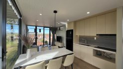 Tọa lạc tại Lâm Đồng – nơi có khí hậu mát mẻ quanh năm, mẫu nhà lắp ghép 2 tầng 84m² được phát triển như một giải pháp nhà ở kết hợp nghỉ dưỡng dành cho gia đình trẻ. Không chỉ đáp ứng nhu cầu sinh hoạt cơ bản, công trình còn hướng đến trải nghiệm sống thư thái, gần gũi thiên nhiên.