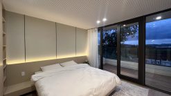 Không gian phòng ngủ mang tính cá nhân hóa cao, vừa đảm bảo riêng tư vừa giữ được sự kết nối với thiên nhiên.