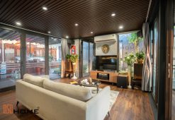 Dự án này cũng nổi bật với khả năng linh hoạt và tính ứng dụng cao của nhà lắp ghép. Toàn bộ móng và kết cấu nhà được thiết kế theo dạng module, có thể tháo lắp hoặc di chuyển khi cần thay đổi vị trí hay tái sử dụng trong tương lai. Đây chính là yếu tố khiến gia chủ cảm thấy hoàn toàn yên tâm khi lựa chọn giải pháp này, đặc biệt khi muốn bổ sung không gian sử dụng mà không gây xáo trộn đến tổng thể kiến trúc cũ.