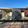 Công trình được lắp đặt ở Hà Nội, có diện tích nhà 44,2m2 và 48,8m2 phần hiên. Hiên phía trước sẽ là đường đi dẫn vào phòng khách và gian bếp. Hiên còn lại sẽ dẫn đến phòng ngủ master.