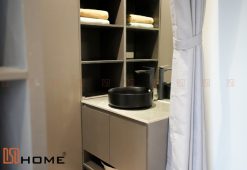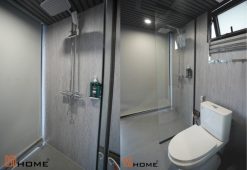 Khu vệ sinh được thiết kế khép kín, phân chia khô – ướt, đáp ứng đầy đủ chức năng sinh hoạt. Toàn bộ quá trình thi công triển khai mà không phải đập phá, không ảnh hưởng kết cấu chính của tòa nhà, phù hợp với yêu cầu “lắp đặt trên sân thượng” của gia chủ.