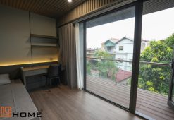 Không gian 32m² được bố trí hợp lý để vừa làm phòng học yên tĩnh, vừa có thể dùng làm phòng ngủ khi cần. Bản hoàn thiện bao gồm khu vực bàn học, giường ngủ nhỏ gọn, tủ đồ và hệ tủ kệ để tivi, tủ sách phát sinh theo yêu cầu sau khi chốt phương án.