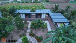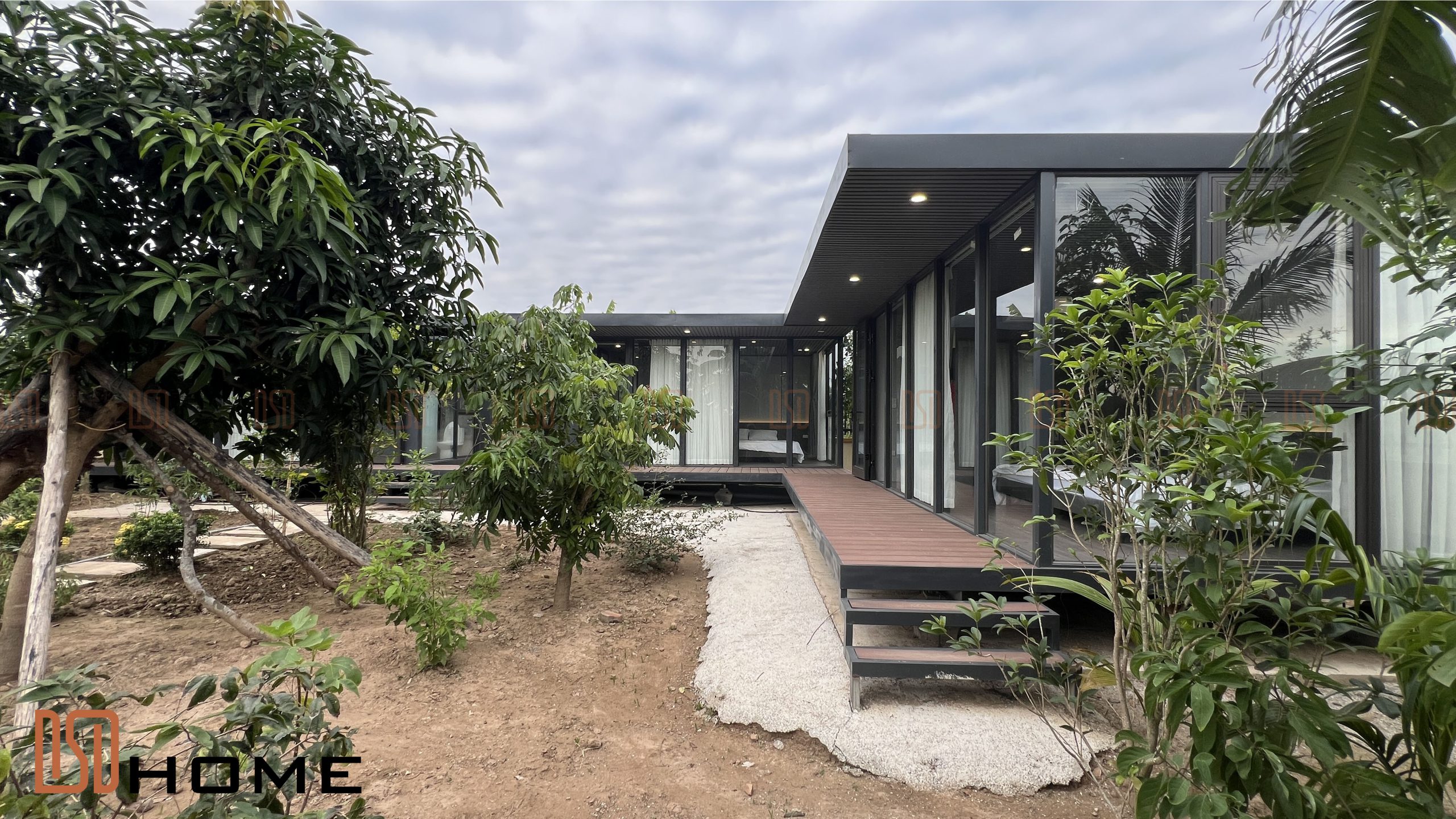 Căn nhà lắp ghép 80m2 tại Hải Phòng được DSDhome thiết kế dạng chữ L với 3 phòng ngủ, 3 WC và tổng mức đầu tư 958 triệu đồng. Công trình cách biển chỉ 1km, tối ưu chống bão, chống ẩm và sở hữu không gian nghỉ dưỡng thoáng sáng nhờ giếng trời, hiên rộng và cảnh quan tự nhiên cho từng phòng. Đây là lựa chọn lý tưởng cho gia đình muốn có nơi quây quần nghỉ lễ nhưng vẫn đảm bảo tiện nghi, thẩm mỹ và độ bền theo thời gian.
