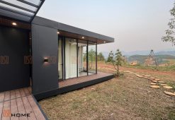 Dự án Homestay nghỉ dưỡng tại Cao Phong, Hòa Bình là một công trình ấn tượng được xây dựng trên đỉnh đồi. Địa hình đặc biệt với đường đi khó khăn và yêu cầu cao về khả năng vận chuyển, thi công, đã đặt ra nhiều thử thách. Với giải pháp nhà lắp ghép linh hoạt, DSDhome không chỉ đảm bảo tiến độ mà còn mang đến một không gian nghỉ dưỡng độc đáo, hài hòa với thiên nhiên.