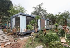 Công trình nằm trong con hẻm nhỏ, xe tải không vào được nên DSDhome sử dụng cần cẩu vận chuyển các module từ đường lớn vào trong khu đất và tiến hành lắp đặt chỉ trong 2 ngày. Nhà lắp ghép Hoà Bình của DSDhome mang thiết kế đơn giản mà hiện đại, tận dụng tối đa ánh sáng tự nhiên cũng như cảnh quan vườn để cho các bé có không gian vui chơi an toàn.