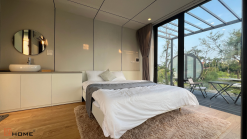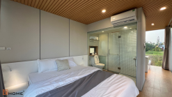 Đầu tiên là phòng ngủ Master được bố trí ở phía trước, có hệ thống cửa kính mặt tiền giúp lấy ánh sáng tự nhiên. Nội thất phòng ngủ gồm giường lớn, tủ đồ và lavabo tiện dụng. Bên cạnh đó là phòng vệ sinh riêng, tạo sự tiện nghi và thoải mái.