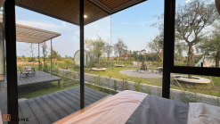 Phòng ngủ thứ ba là phòng linh hoạt nằm ở khối nhà bên trái và có thể chuyển đổi công năng thành phòng khách hoặc bếp, tùy theo nhu cầu sử dụng của gia đình. Phòng này có sảnh dẫn ra hiên bên ngoài, giúp tạo không gian thư giãn và thoáng mát.