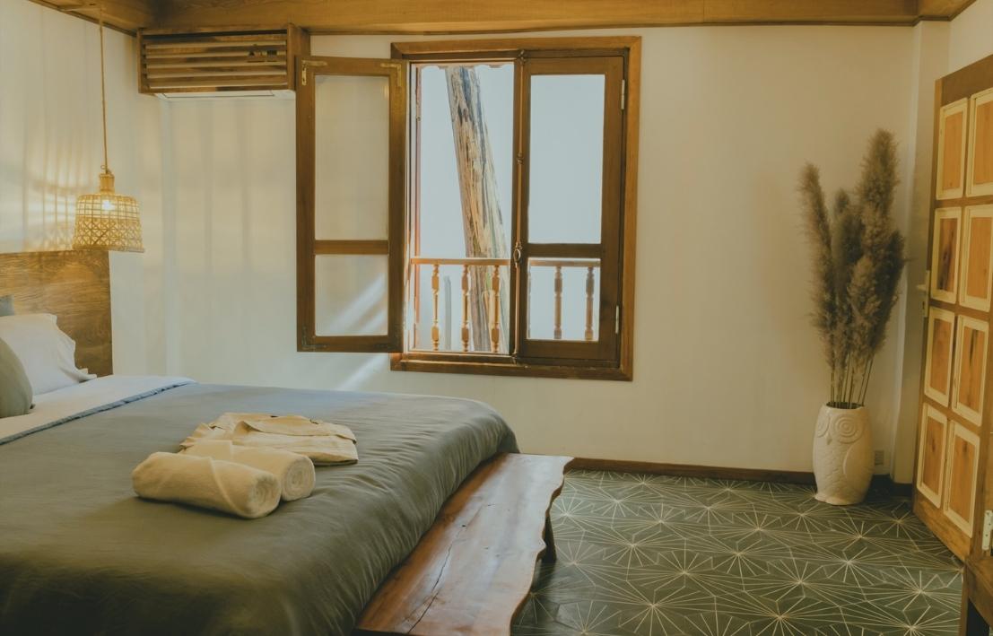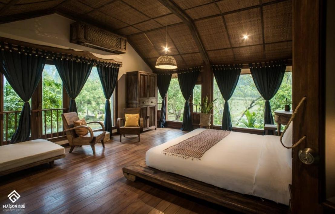 Phòng nghỉ tại Maison Quê được thiết kế mộc mạc nhưng đầy đủ tiện nghi, hướng ra khu vườn xanh mướt. Đây là nơi lý tưởng để bạn thảnh thơi ngồi đọc sách, thưởng trà hay đơn giản chỉ là đón ánh nắng mai len qua tán lá mỗi sáng.