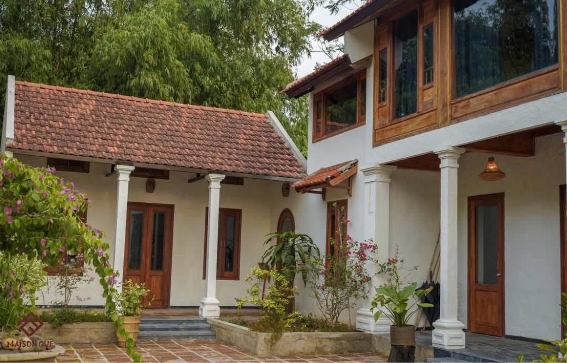 Maison Quê là homestay Ninh Bình mang phong cách thôn quê Bắc Bộ truyền thống, với những căn nhà gạch cổ, mái ngói rêu phong và sân vườn rộng. Không gian nơi đây tái hiện lại một làng quê Việt Nam xưa, vừa bình yên, vừa đậm đà bản sắc. Từng chi tiết nhỏ như hàng cau, giếng nước, cối xay đều gợi nhắc về một tuổi thơ giản dị.