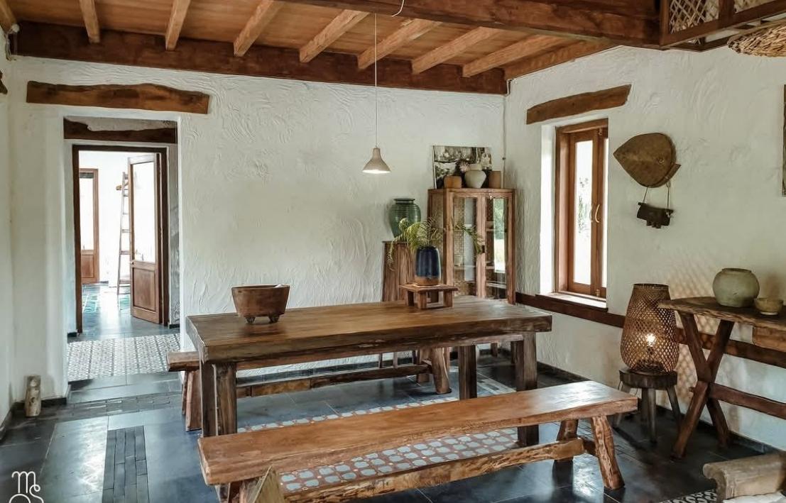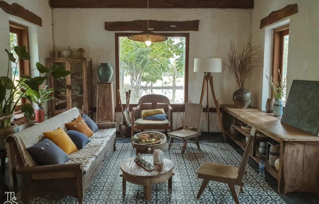 Nội thất gỗ thô mộc tạo cảm giác ấm cúng và gần gũi