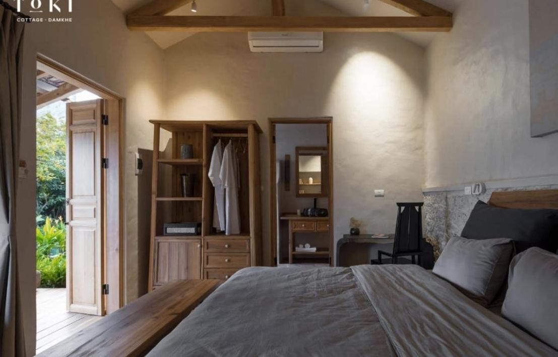 Toki Cottage là một homestay Ninh Bình mang đậm phong cách vintage mộc mạc giữa lòng cố đô. Nơi đây gây ấn tượng bởi những căn bungalow nhỏ xinh, mái lá, nội thất gỗ thô mộc cùng khu vườn xanh mướt. Với không gian yên tĩnh và không khí trong lành, Toki Cottage đặc biệt thích hợp cho những ai đang tìm kiếm sự thư giãn, nghỉ dưỡng thực thụ.