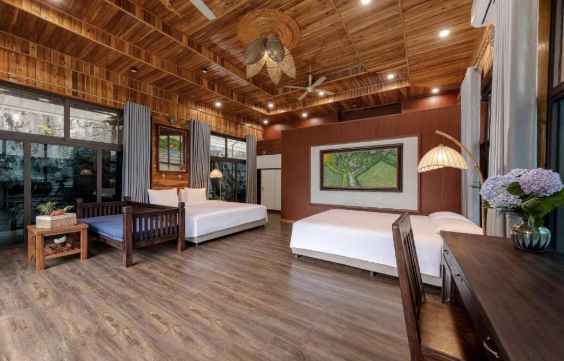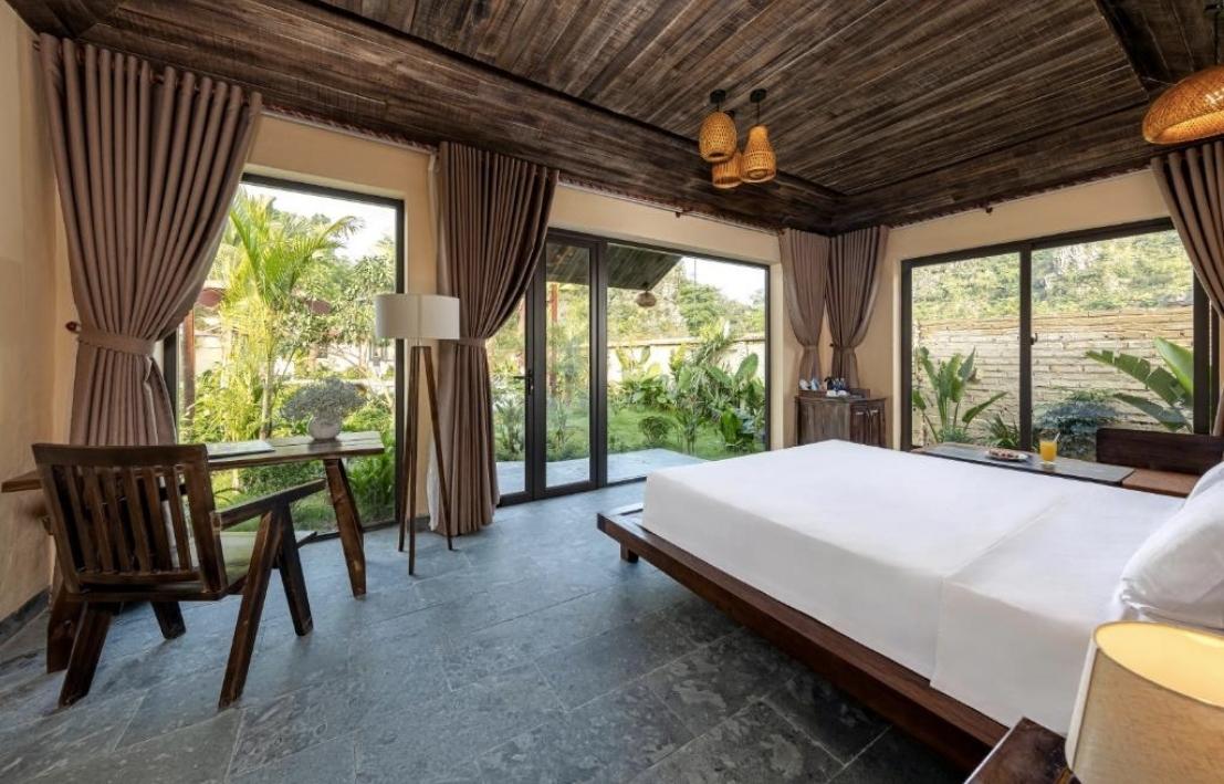 Nơi đây phù hợp cho những ai tìm kiếm không gian yên tĩnh, riêng tư và đẳng cấp. Du khách có thể tận hưởng dịch vụ 5 sao giữa lòng thiên nhiên, tham gia các tour tham quan sinh thái, đạp xe hay chèo thuyền khám phá vẻ đẹp nguyên sơ của Tràng An.