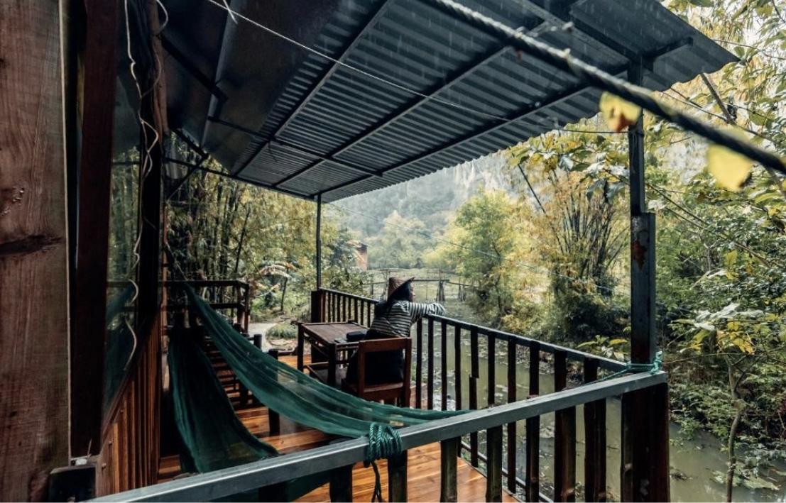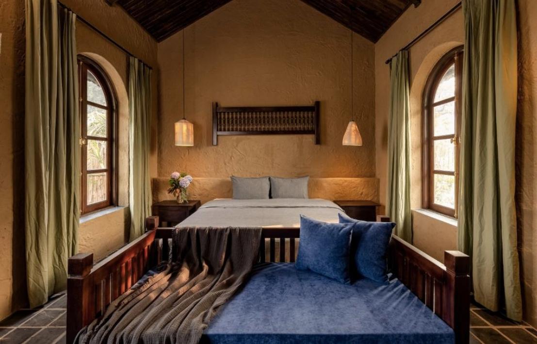 Cháy Mountain Retreat là homestay Ninh Bình độc đáo dành cho những tâm hồn tự do, yêu khám phá. Homestay nằm ngay chân núi, bao quanh là những cánh đồng lúa bát ngát và dòng suối nhỏ róc rách. Các bungalow gỗ mộc mạc nép mình dưới tán cây xanh, mang đến cảm giác tách biệt hoàn toàn khỏi thế giới ồn ào.