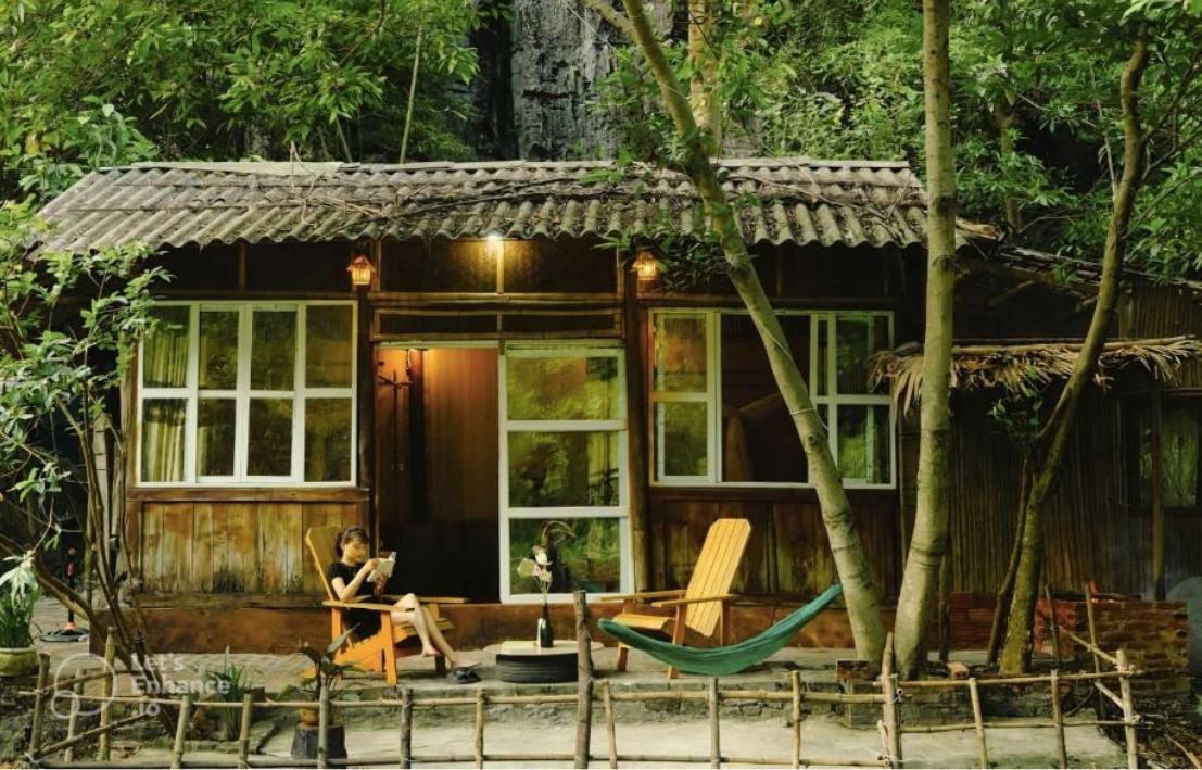 Ninh Bình Valley Homestay nổi bật với không gian ẩn mình giữa thung lũng xanh mướt, bao quanh bởi núi đá vôi và hồ nước trong veo. Đây là homestay Ninh Bình lý tưởng để bạn hoàn toàn tách biệt khỏi ồn ào phố thị, tận hưởng bầu không khí thiên nhiên thuần khiết. Các bungalow được thiết kế đơn giản, sử dụng vật liệu tự nhiên như tre, nứa nhưng vẫn rất đầy đủ tiện nghi.