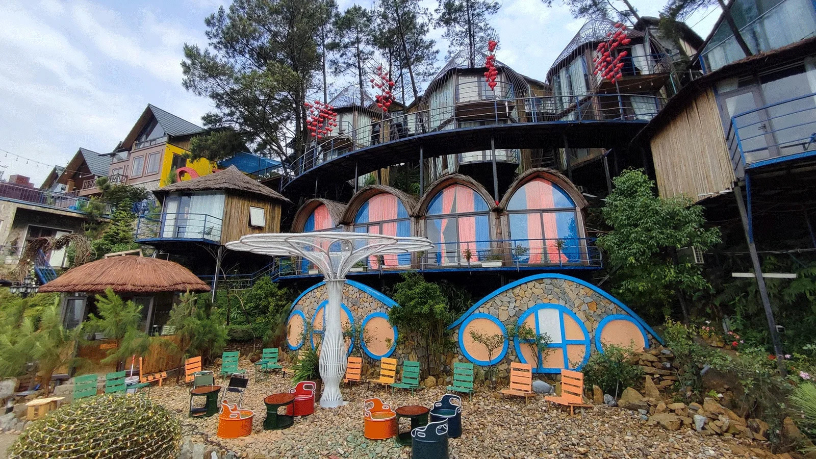 Homestay 90s ở Tam Đảo nổi bật với view sống ảo độc đáo từ các căn nhà xinh xắn trên đồi, được thiết kế theo nhiều phong cách khác nhau. Với vị trí trên cao, mỗi căn nhà tận hưởng tầm nhìn toàn cảnh về cảnh quan tuyệt vời.