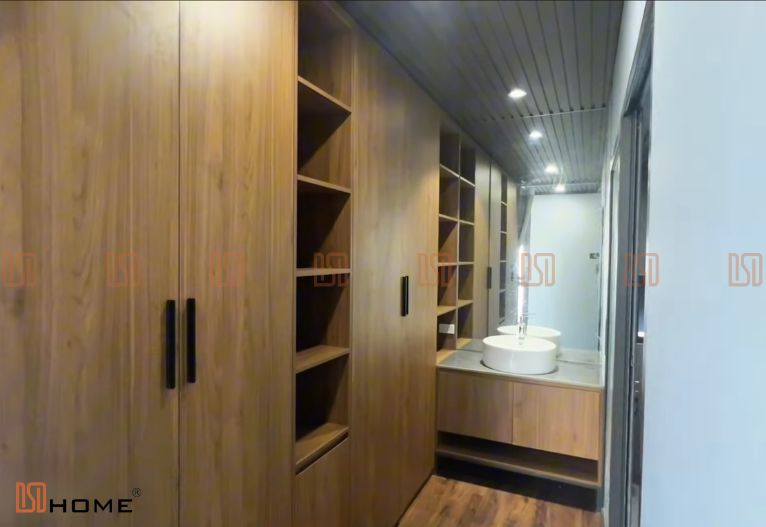 Giải pháp tủ âm tường thông minh kết nối khu vực thay đồ Master và nhà vệ sinh khép kín