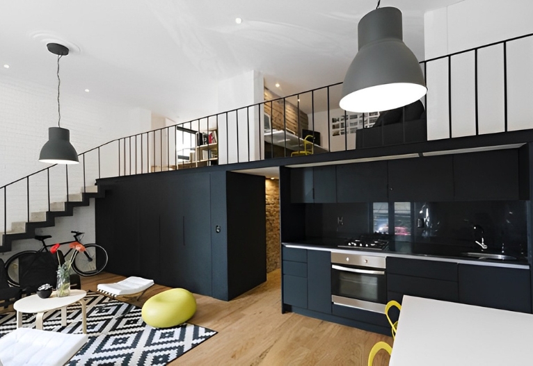 Mẫu nhà tiền chế gác lửng hiện đại thường được xây dựng với diện tích nhỏ. Các mẫu thiết kế này rất đơn giản, nhỏ gọn, tiện nghi. Hơn nữa, các màu sắc được lựa chọn là màu lạnh mang lại cảm giác dịu mắt. Đối với mẫu nhà này chủ nhà không trang trí quá nhiều nội thất. Thay vào đó là những thiết bị thông minh như TV, tủ lạnh, thiết bị cảm ứng, thiết bị điều khiển tự động. Vì những thiết bị này sẽ giúp tổng quan căn nhà trở nên hiện đại, tiện nghi hơn.