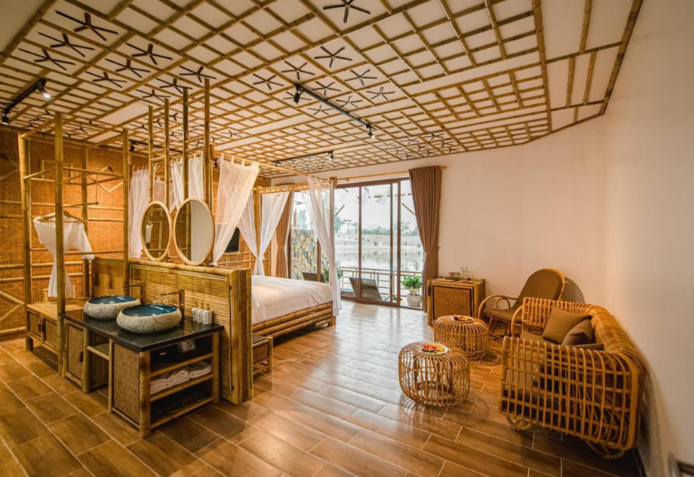 Khu nghỉ dưỡng Ninh Bình Tam Cốc La Montagne sở hữu phong cách thiết kế sang trọng và hiện đại hòa vào một chút mộc mạc, giản dị của những mái nhà lợp rạ cùng nội thất được làm bằng vật liệu thiên nhiên như trúc, tre,… tạo cho du khách một ấn tượng sâu sắc.